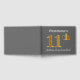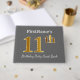 This guest book design features the ordinal number "11th" with a faux/imitation gold-like appearance. It also features a personalised name, and a grey (grey) coloured background. It could be used at a birthday party for somebody who is celebrating their eleventh birthday. [~Z0000193]