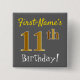 Grey, Faux Gold 11th Birthday, With Custom Name 15 Cm Square Badge
