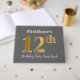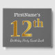 This guest book design features the ordinal number "12th" with a faux/imitation gold-like appearance. It also features a customised name, and a grey (grey) coloured background. It could be used at a birthday party for somebody who is celebrating their twelfth birthday. [~Z0000193]