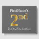 This guest book design features the ordinal number "2nd" with a faux/imitation gold-like appearance. It also features a customised name, and a grey (grey) coloured background. It could be used at a birthday party for somebody who is celebrating their second birthday. [~Z0000193]