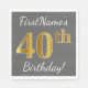 Grey, Faux Gold 40th Birthday + Custom Name Napkin