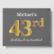 This guest book design features the ordinal number "43rd" with a faux/imitation gold-like appearance. It also features a custom name, and a grey (grey) coloured background. It could be used at a birthday party for somebody who is celebrating their forty third birthday. [~Z0000193]