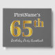 This guest book design features the ordinal number "65th" with a faux/imitation gold-like appearance. It also features a customised name, and a grey (grey) coloured background. It could be used at a birthday party for somebody who is celebrating their sixty fifth birthday. [~Z0000193]