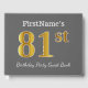 This guest book design features the ordinal number "81st" with a faux/imitation gold-like appearance. It also features a customised name, and a grey (grey) coloured background. It could be used at a birthday party for somebody who is celebrating their eighty first birthday. [~Z0000193]