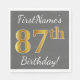 Grey, Faux Gold 87th Birthday + Custom Name Napkin
