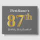 This guest book design features the ordinal number "87th" with a faux/imitation gold-like appearance. It also features a customised name, and a grey (grey) coloured background. It could be used at a birthday party for somebody who is celebrating their eighty seventh birthday. [~Z0000193]