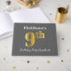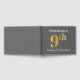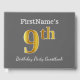 This guest book design features the ordinal number "9th" with a faux/imitation gold-like appearance. It also features a customised name, and a grey (grey) coloured background. It could be used at a birthday party for somebody who is celebrating their ninth birthday. [~Z0000193]