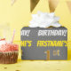 This wrapping paper design features a message like "FIRSTNAME’S 1st BIRTHDAY!", with the "1st" having a faux/imitation gold-like colour appearance, and with the name and "BIRTHDAY" in a fun, bold font. The name can be personalised, and the background is coloured grey (grey). Wrapping paper like this could perhaps be used when wrapping birthday gifts being given to somebody in celebration of their first birthday. [~Z0000211]