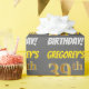 This wrapping paper design features a message like "GREGOREY’S 39th BIRTHDAY!", with the "39th" having a faux/imitation gold-like colour appearance, and with the name and "BIRTHDAY" in a fun, bold font. The name can be personalised, and the background is coloured grey (grey). Wrapping paper like this could perhaps be used when wrapping birthday gifts being given to somebody in celebration of their thirty ninth birthday. [~Z0000211]