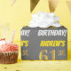 This wrapping paper design features a message like "ANDREW’S 61st BIRTHDAY!", with the "61st" having a faux/imitation gold-like colour appearance, and with the name and "BIRTHDAY" in a fun, bold font. The name can be personalised, and the background is coloured grey (grey). Wrapping paper like this could perhaps be used when wrapping birthday gifts being given to somebody in celebration of their sixty first birthday. [~Z0000211]