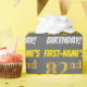 This wrapping paper design features a message like "FIRST-NAME’S 82nd BIRTHDAY!", with the "82nd" having a faux/imitation gold-like colour appearance, and with the name and "BIRTHDAY" in a fun, bold font. The name can be customised, and the background is coloured grey (grey). Wrapping paper like this could perhaps be used when wrapping birthday gifts being given to somebody in celebration of their eighty second birthday. [~Z0000211]