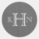 Cute Modern Girly Trendy Chic Stylish Round Sticker with Grey faux burlap canvas texture with Custom Personalised Monogram Initial. Click the Customise It button to add your own custom text, change fonts and create your own unique one of a kind label design.