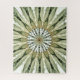A kaleidoscopic fractal creates a circle of grey feathers, giving this jigsaw puzzle the feeling of Native American art.