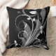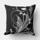 Grey Floral Pattern on Black Cushion