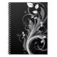 Grey Floral Pattern on Black Notebook