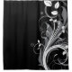 Grey Floral Pattern on Black Shower Curtain
