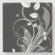 Grey Floral Pattern on Black Stone Coaster