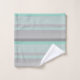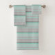 Grey- fresh green stripes ( 55C6A9 ) - bath towel set featuring some trendy colours in 2020 .Unique design with horizontal stripes inspired by Art-Deco . Originally from Alma Wad . Personalise it with her /his initials .Just hit the Add text tab now.