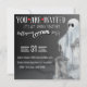 Cute spooky grey ghost standing behind some spooky tombstones appear at the right of the card in watercolor effect. Reverse of card contains three tombstones towering in the middles of the invitation with a gradient of muted grey and black. Party invitation information is fully customisable with exception of script at the top of the invite. Let's Get Spooky Together Halloween Costume Party