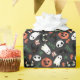 Cute cat, ghost, and pumpkin themed Halloween wrapping paper in dark grey with happy pumpkins, skulls, cats, ghosts, and bats for any family friendly Halloween event, like Halloween birthday parties, Halloween baby showers, and more.