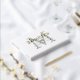 Monogrammed gay wedding guestbook in white with your soon to be shared initial in light grey against a white background with your names and wedding date printed on top in gold foil separated by a bow-tie divider in gold. Gold, white, and grey gay wedding guestbook with your monogram a golden bow-tie, and your names in a retro script. Gold foil LGBTQ wedding guestbook for two grooms with gold foil text and a bow-tie divider with your monogram in light grey beneath.