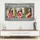Announce to the world that your favourite grad has reached their milestone with this girly, stunning, simple, modern, personalised photo banner. A fun, playful visual of white script handwriting and cute, playful hearts, along with her name, class year, school, and 3 photos of your choice overlay a soft grey background. Personalise the custom text with your grad’s name, school and class year. Choose from indoor or outdoor options. Matching invites, thank you cards, cap toppers, posters, plaques, and other graduation goodies are also available in this trendy and stylish collection. Guaranteed to preserve cherished memories of their special occasion!