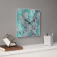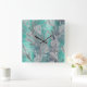 Grey Graphite Aquatic Teal Floral Butterfly Square Wall Clock