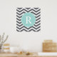 Grey Gray Mint Chevron Monogram Poster