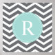 Customise this vibrant grey / gray, white and mint teal turquoise chevron pattern and monogram design with your initial.