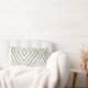 These 13" x 21" lumbar throw pillows feature a modern diamond design in the popular grey-green shade also know as October Mist on a white background.