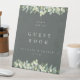 Grey Green Snowberry+Eucalyptus Wedding Guest Book Pedestal Sign