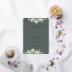 A dark grey green wedding rehearsal dinner invitation, for when the event(s) are all based at the same venue. Featuring an edging of hand painted snowberries and stems of eucalyptus. The text and scattered dots on the front of the card are foil pressed. Please view this Collection in my store for alternative floral arrangements, different colours and for coordinating items.