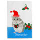 This lovely personalised Christmas gift bag features a cute fluffy Grey and white Hamster holding a present and wearing a Santa hat against a white background with Holly. The name can be changed. Perfect for Hamster enthusiasts of all ages.