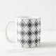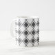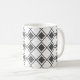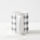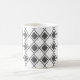 This mug has a mid-century modern design of solid grey diamonds inside grey diamond outlines on a field of white.