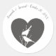 These round stickers make perfect personalised envelope seals for sending out wedding invitations and other correspondence. The simple design features a charcoal grey heart with a pair of white birds in silhouette. Use the template field to easily customise the text. Find coordinating items and party supplies in the Grey Heart White Birds Wedding Collection from Asterisk Designs.