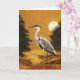 This card is illustrated with a Grey Heron set against a golden sunset.