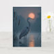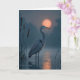 A grey heron stands gracefully in shallow water surrounded by tall reeds as the pink moon casts a warm glow across the scene.
