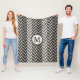 Grey Herringbone Alternating Stripes Monogram Fleece Blanket