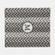 Various neutral colour shades from dark grey to a warm off white alternate in a herringbone pattern of stripes. Add your own custom monogram in the centre circle.
