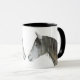 A pastel portrait of a lovely grey horse is featured on this pretty mug.