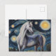 A beautiful grey horse in a starry night in the style of Van Gogh