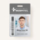 Customisable grey hospital ID badge featuring space for a photo, name, title, department, and barcode. Includes room for your hospital or company logo and back-of-badge text for policies or identification details. A sleek and professional choice for healthcare staff and employees.