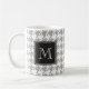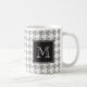 The grey and white houndstooth pattern on this monogram mug may be changed to another colour by customising the background from grey to the colour of your choice.