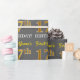 This wrapping paper design features a message like "First-Name’s 17th BIRTHDAY!", with the "17th" having a faux/imitation gold-like colour appearance. The name can be customised, and the background is coloured grey (grey). It could perhaps be used when wrapping gifts being given for somebody’s seventeenth birthday. [~Z0000185]