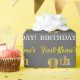 This wrapping paper design features a message like "First-Name’s 8th BIRTHDAY!", with the "8th" having a faux/imitation gold-like colour appearance. The name can be personalised, and the background is coloured grey (grey). It could perhaps be used when wrapping gifts being given for somebody’s eighth birthday. [~Z0000185]