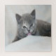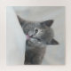An adorable little grey kitten getting a taste of snow on this awesome puzzle.