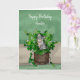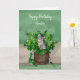 Grey Kitten sitting in a Pot of Catnip Birthday Card