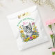 A pretty little grey striped kitten in a bed of yellow and pink flowers watercolor illustration girl's birthday party favour bags.