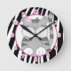 This super cute clock is truly one of a kind! Featuring a cute grey and white cat (with a flower in her hair) pink numbers and a zebra stripe background! This oddly fun clock was inspired by my 7-year old daughter and is sure to be a hit with any little girl who loves cats!