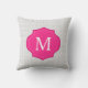Grey Lattice Pattern Hot Pink Monogram Cushion